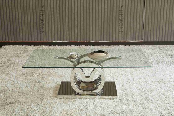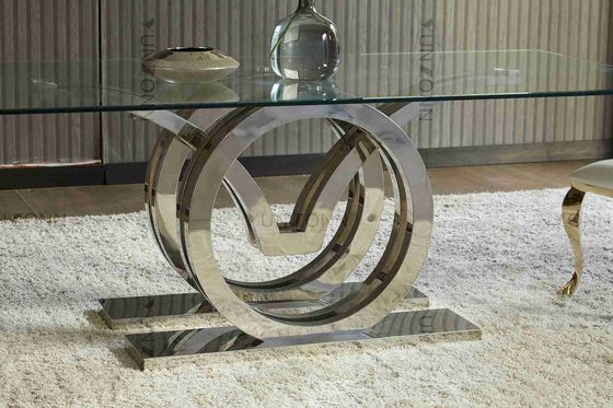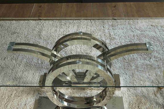 Seagulls Design โครงโต๊ะรับประทานอาหารกระจกฐานสแตนเลสฐานกระจกสีเงิน