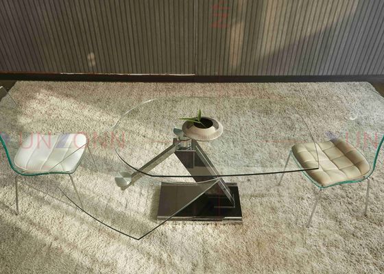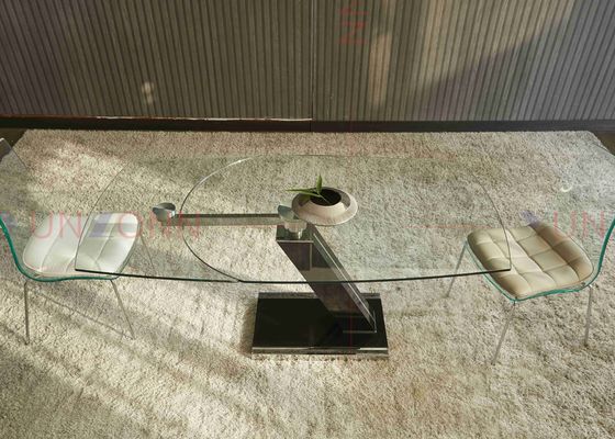 โต๊ะรับประทานอาหารแบบยืดหยุ่นได้หลายแบบขยายได้พร้อมส่วนต่อขยายบนกระจกสองใบ