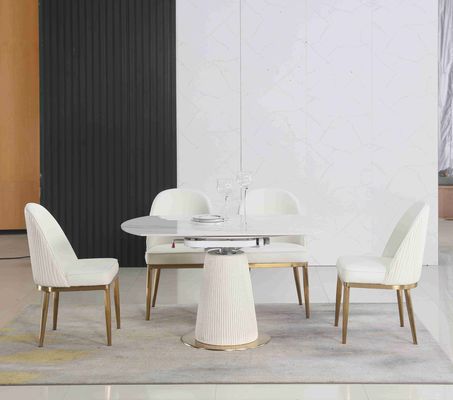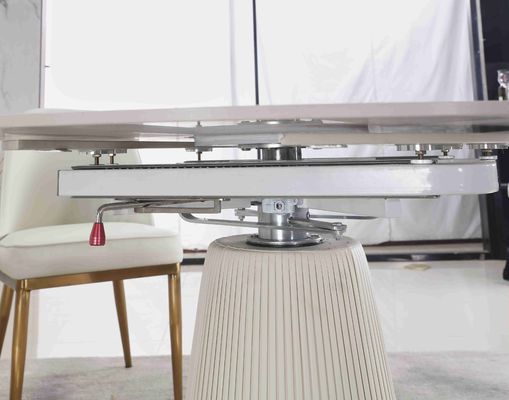 โต๊ะกลมพับแบบยืดหดได้สีขาวแบบขยายได้พร้อมที่นั่ง 6 ที่นั่งสำหรับห้องรับประทานอาหาร