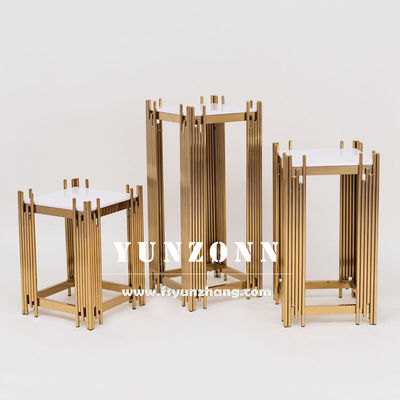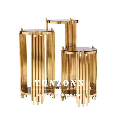 ขายส่งโต๊ะด้านท้ายแบบโมเดิร์น 3 ชุดที่มีฐานสแตนเลสทอง