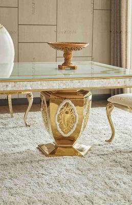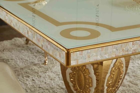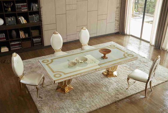 บรรยากาศหรูหราโนเบิลท็อปโต๊ะดีไซน์ไม่ซ้ำใครพร้อมโต๊ะรับประทานอาหารลวดลายพร้อมที่นั่ง 10-12 ที่นั่ง