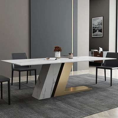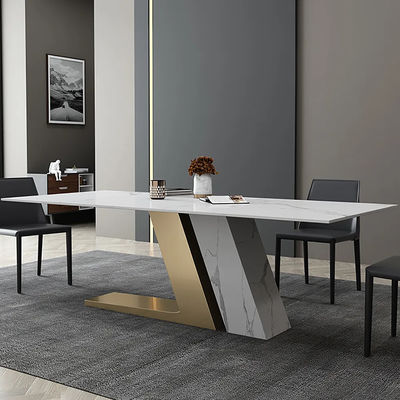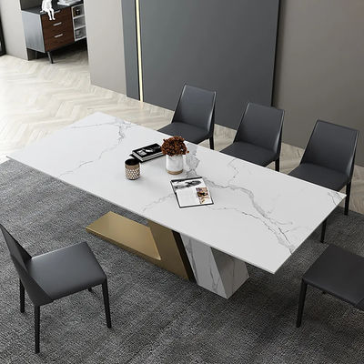 ชุดโต๊ะรับประทานอาหารและเก้าอี้หินเผาที่หรูหราน้ำหนักเบาทันสมัยครอบครัวเล็กรูปสี่เหลี่ยมผืนผ้าเรียบง่าย