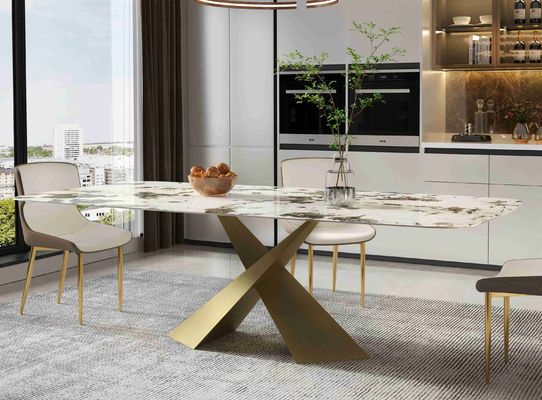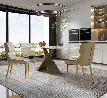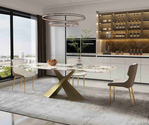 Bright rock board โต๊ะรับประทานอาหารอพาร์ทเมนท์ขนาดเล็ก designer โต๊ะรับประทานอาหาร Nordic modern light luxury bronze โต๊ะรับประทานอาหาร
