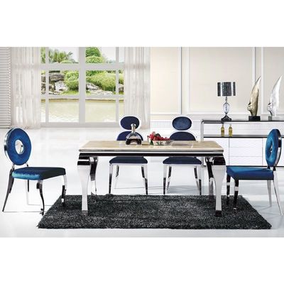 โต๊ะอาหารส่วนใหญ่เป็นแบบเรียบง่าย เหมาะสำหรับซื้อในบ้านสไตล์เรียบง่ายทนทานไม่ใช่สีของดอกไม้ แต่เป็นสแตนเลสสีเงินคลาสสิกเป็นสีหลักหน้าโต๊ะสามารถเลือกใช้แผงหินอ่อนหรือแผ่น MDF ได้รูปแบบนี้ได้รับการซื้อในปริมาณมากโดยตัวแทนจำหน่ายเฟอร์นิเจอร์รายใหญ่