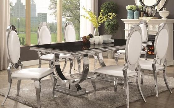 โต๊ะอาหารส่วนใหญ่เป็นแบบเรียบง่าย เหมาะสำหรับซื้อในบ้านสไตล์เรียบง่ายทนทานไม่ใช่สีของดอกไม้ แต่เป็นสแตนเลสสีเงินคลาสสิกเป็นสีหลักหน้าโต๊ะสามารถเลือกใช้แผงหินอ่อนหรือแผ่น MDF ได้รูปแบบนี้ได้รับการซื้อในปริมาณมากโดยตัวแทนจำหน่ายเฟอร์นิเจอร์รายใหญ่