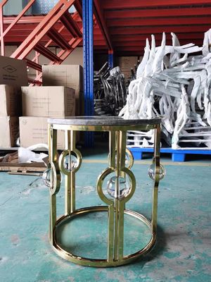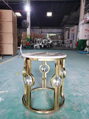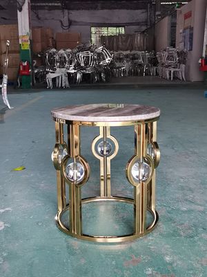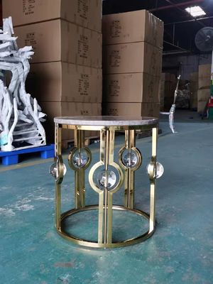 สแตนเลสชุบทองโต๊ะข้างหินอ่อนแสงหรูหราโลหะคริสตัลบอลรอบมุมโต๊ะ