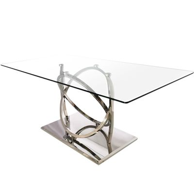โต๊ะรับประทานอาหารโลหะสีเงินหรูหราพร้อมกระจกใสสำหรับห้องรับประทานอาหาร