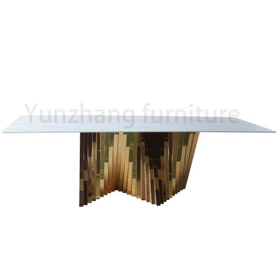 ฐานโลหะโต๊ะอาหารไม่สม่ำเสมอสีทองสุดหรูพร้อมโต๊ะหินอ่อน