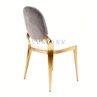 เก้าอี้จัดเลี้ยงงานแต่งงานโรงแรมสีทองแบบกลมด้านหลังผ้าสีเทาและโลหะหรูหราขายส่ง |