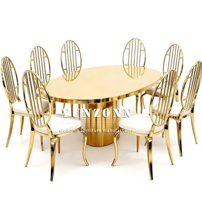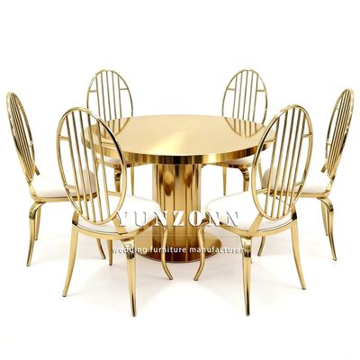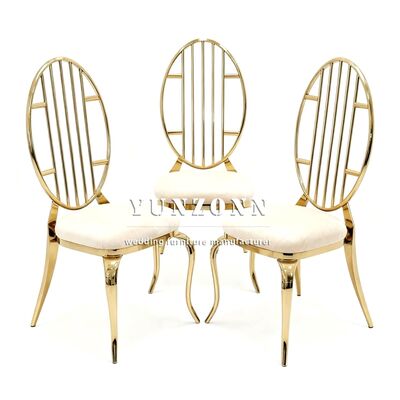 | ชื่อผลิตภัณฑ์: | เฟอร์นิเจอร์หรูทันสมัย เก้าอี้ทานอาหารสำหรับจัดเลี้ยงงานแต่งงานสำหรับผู้มาเยือนห้องรอสแตนเลสสตีลสีทอง |