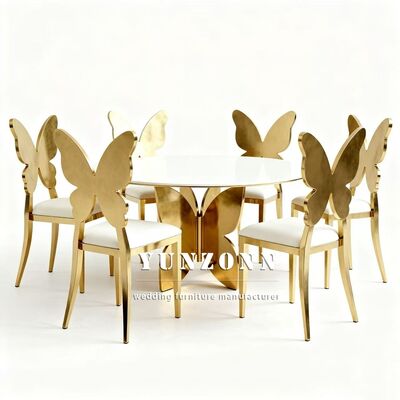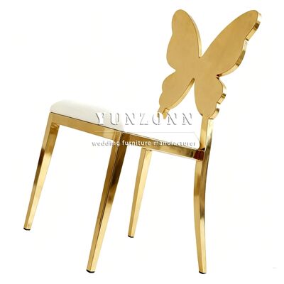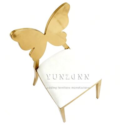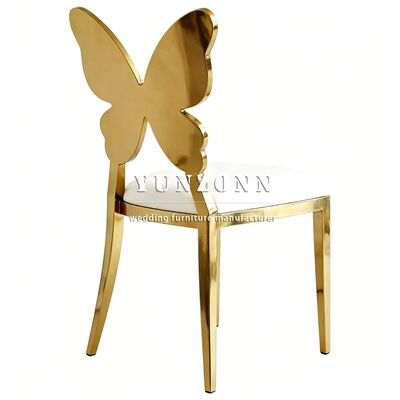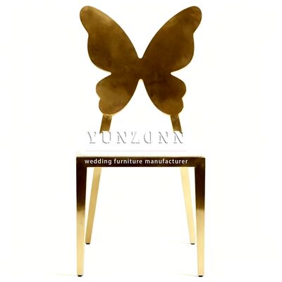 ผลิตอย่างมืออาชีพ เก้าอี้ทานอาหารสแตนเลสสตีล Butterfly Back แสนสบาย พนักพิงสีทอง เก้าอี้สำหรับงานแต่งงานและงานอีเว้นท์ |