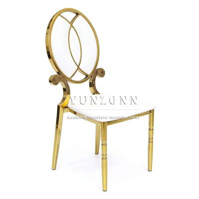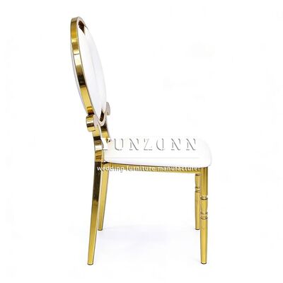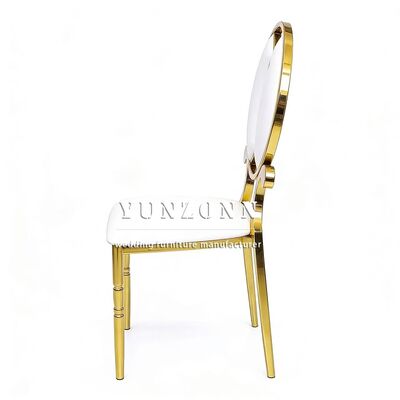 ขายปลีก เฟอร์นิเจอร์ที่สะสมได้ทันสมัย เก้าอี้อาหารทอง เก้าอี้แต่งงานทองเหล็กไร้สแตนเลสหรูสําหรับร้านอาหารและงานเลี้ยง |