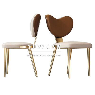 เก้าอี้หนังรูปหัวใจสวยงาม เฟอร์นิเจอร์ห้องรับประทานอาหารวิลล่าหรูหรา เก้าอี้รับประทานอาหารขาโลหะประณีต |