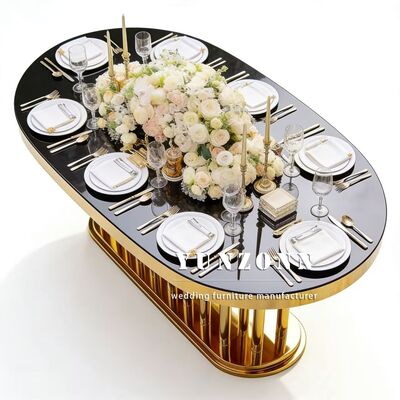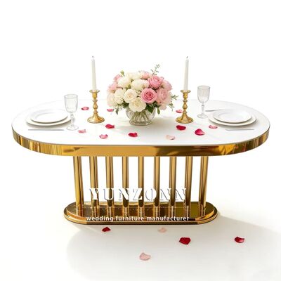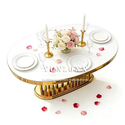 | ชื่อสินค้า: | เฟอร์นิเจอร์งานแต่ง ขายปลีก ทองโอวาล เฟรมเหล็กไร้ขาว กระจกกระจก ขาว โต๊ะโต๊ะอาหาร โรงแรม โต๊ะสําหรับงานแต่ง |