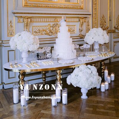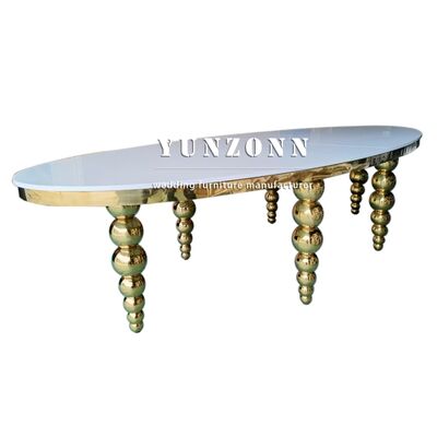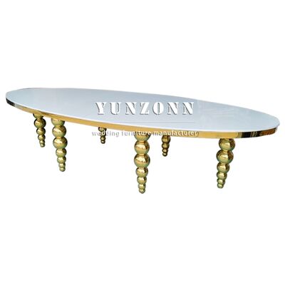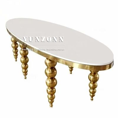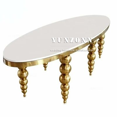โต๊ะรูปไข่สำหรับงานแต่งงาน เฟอร์นิเจอร์สแตนเลส ขาเหล็ก MDF สีขาว สำหรับงานปาร์ตี้