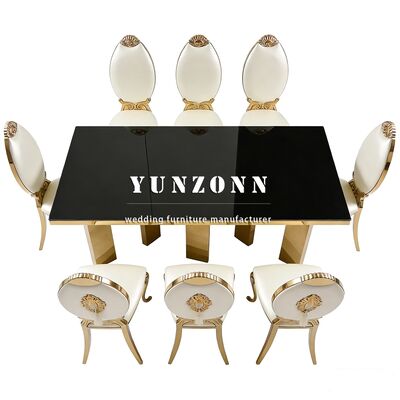| ชื่อสินค้า: | โรงงานผลิตเฟอร์นิเจอร์ ขายตรงของเหล็กไร้ขัด โต๊ะนั่งหลังสูงแบบคลาสสิคเคลือบทอง เหมาะสําหรับงานแต่งงานและงานเลี้ยง |