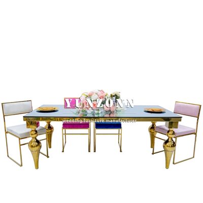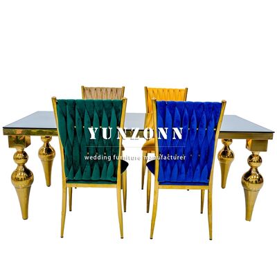 | ชื่อผลิตภัณฑ์: | เฟอร์นิเจอร์ร้านอาหารโรงแรมราคาถูกจากโรงงาน Foshan โต๊ะจัดเลี้ยงสแตนเลสสีทองกระจกเงา |