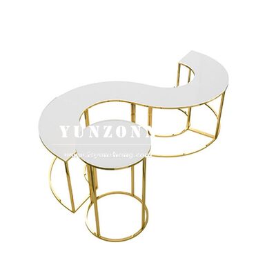 สแตนเลส โลหะ MDF ด้านบนของโต๊ะแต่งงาน การตกแต่งวงกลมอลังการสําหรับการใช้ในโรงแรม