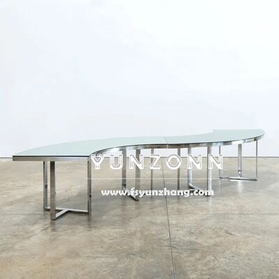 | ชื่อผลิตภัณฑ์: | โต๊ะอาหารกระจกสีดำหรูทรงพระจันทร์ครึ่งดวง พระจันทร์เต็มดวง รูปตัว S โต๊ะจัดเลี้ยงงานแต่งงาน สแตนเลส สำหรับโรงแรม |