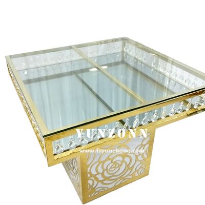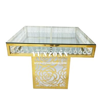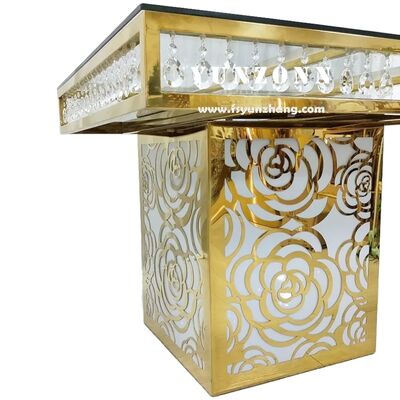 | ชื่อผลิตภัณฑ์: | โต๊ะเค้กกระจกคริสตัลสแตนเลสฐานกุหลาบสี่เหลี่ยมราคาโรงงานเฟอร์นิเจอร์จัดงานแต่งงานหรู |