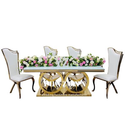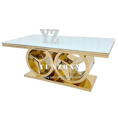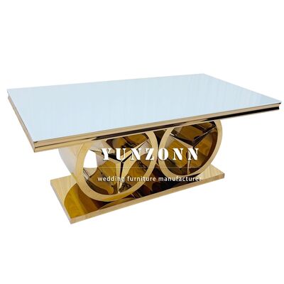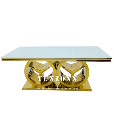 | ชื่อผลิตภัณฑ์: | โต๊ะทานอาหารสี่เหลี่ยมสีทองสไตล์โมเดิร์นพร้อมฐานเบนซ์ เฟอร์นิเจอร์หรูสำหรับจัดงานแต่งงานสำหรับใช้ภายนอกและโรงแรม ท็อปกระจก/MDF |