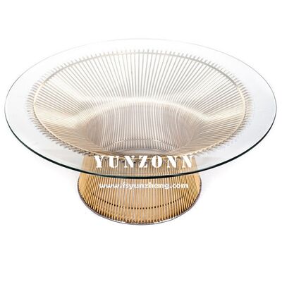 | ชื่อผลิตภัณฑ์ | โต๊ะกาแฟทรงกลมสไตล์ Mid-Century Modern หรูหรา ท็อปกระจกนิรภัยพร้อมฐานลวดโลหะ |
