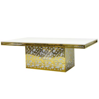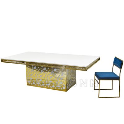 โต๊ะรับประทานอาหารกระจกสีทองสแตนเลสสตีลคริสตัลเพดานโรงแรมหรูสำหรับงานเลี้ยง ร้านอาหาร และงานปาร์ตี้ |