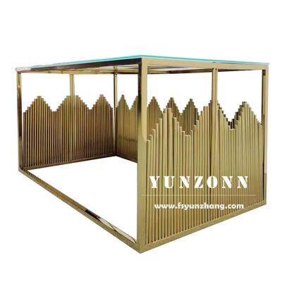 | ชื่อผลิตภัณฑ์: | เฟอร์นิเจอร์จัดงานแต่งงาน โรงแรม Foshan ดีไซน์ใหม่ โต๊ะทานอาหารสแตนเลสสีทองสำหรับคู่บ่าวสาว |