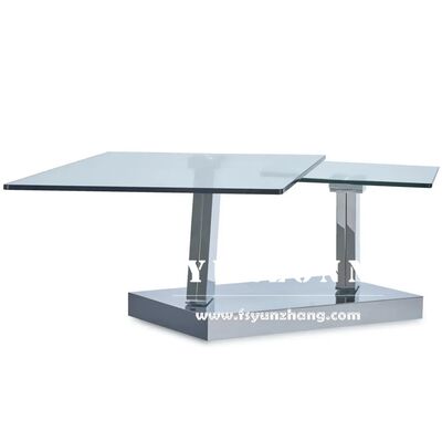 | ชื่อผลิตภัณฑ์: | โต๊ะกาแฟกระจกนิรภัยทรงสี่เหลี่ยมผืนผ้าร่วมสมัยพร้อมสแตนเลสหมุนตรงกลางสำหรับบ้านหรือวิลล่าขายตรงจากโรงงาน |