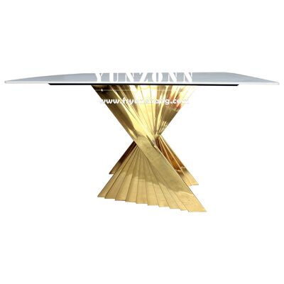 | ชื่อผลิตภัณฑ์: | โต๊ะทานอาหารสแตนเลสสตีลสีทอง/เงินคุณภาพสูงหรูหราสำหรับงานแต่งงานพร้อมท็อปโต๊ะกระจกนิรภัย |