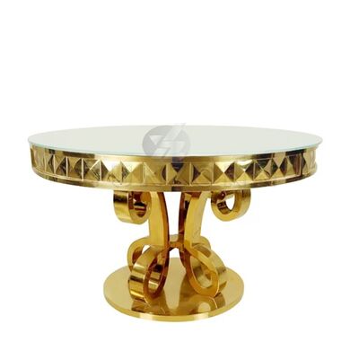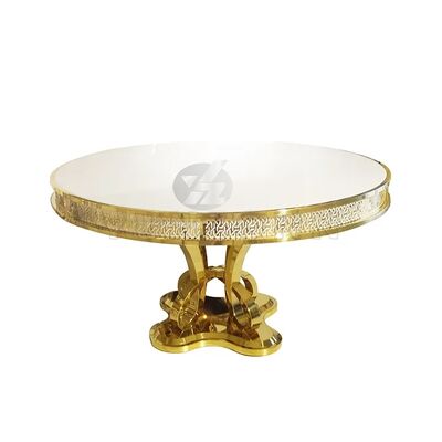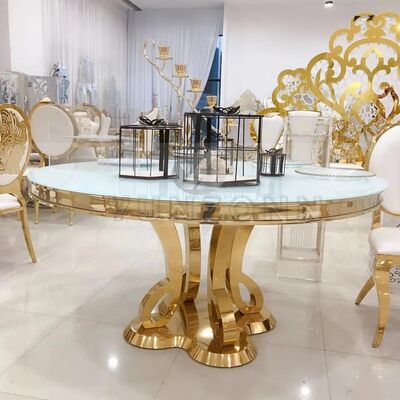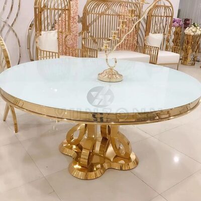 โต๊ะรับประทานอาหาร MDF/กระจกชั้นสูงโมเดิร์นหรูสไตล์สแตนเลส สําหรับงานแต่ง งานเลี้ยง โรงแรม